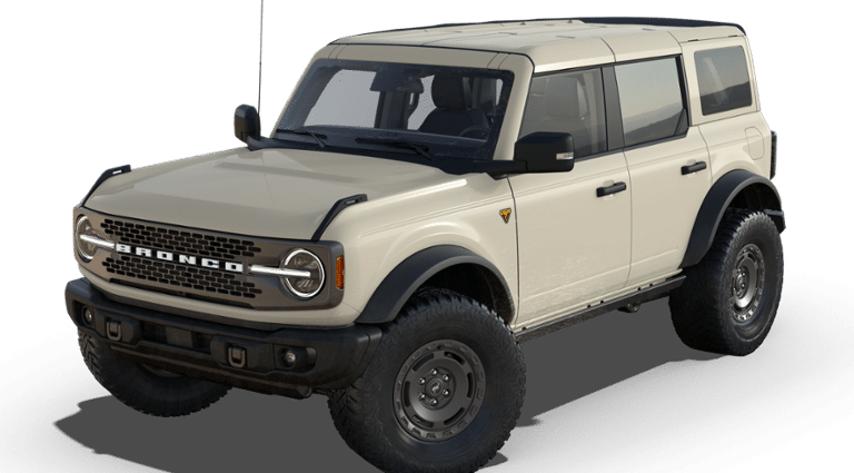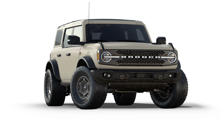 Bronco Badlands, 4D Sport Utility, 2.7L EcoBoost V6, 10-Speed Automatic, 4WD, Desert Sand, Black Onyx w/Leather-Trimmed/Vinyl Bucket Seats, Wheels: 17 Carbonized Gray-Painted Aluminum.