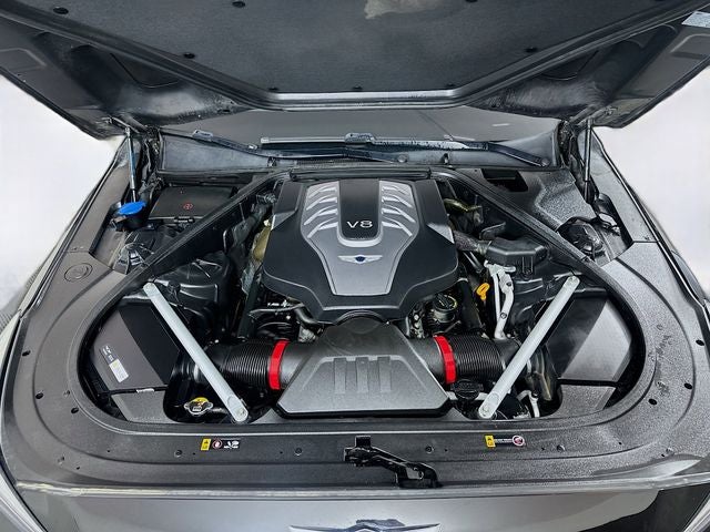 Victoria Black 8-Speed Automatic with SHIFTRONIC 5.0L V8 DGI DOHC 32V Dual CVVT Navigation System, Option Group 01, Power moonroof, 17 Speakers, 4-Wheel Disc Brakes, ABS brakes, Adaptive suspension, Air Conditioning, Alloy wheels, AM/FM radio: SiriusXM, Auto High-beam Headlights, Auto tilt-away steering wheel, Auto-dimming door mirrors, Auto-dimming Rear-View mirror, Auto-leveling suspension, Automatic temperature control, Bodyside moldings, Brake assist, Bumpers: body-color, Compass, Delay-off headlights, Door auto-latch, Driver door bin, Driver vanity mirror, Dual front impact airbags, Dual front side impact airbags, DVD-Audio, Electronic Stability Control, Emergency communication system: Genesis Connected Services, Exterior Parking Camera Rear, Four wheel independent suspension, Front anti-roll bar, Front Bucket Seats, Front Center Armrest, Front dual zone A/C, Front fog lights, Front reading lights, Fully automatic headlights, Garage door transmitter: HomeLink, Genuine wood dashboard insert, Genuine wood door panel insert, Head restraints memory, Heads-Up Display, Heated & Vented Front Bucket Seats w/Memory, Heated door mirrors, Heated front seats, Heated rear seats, Heated steering wheel, Illuminated entry, Knee airbag, Leather Shift Knob, Leather steering wheel, Low tire pressure warning, Memory seat, Nappa Leather Seating Surfaces, Occupant sensing airbag, Outside temperature display, Overhead airbag, Overhead console, Panic alarm, Passenger door bin, Passenger vanity mirror, Power adjustable front head restraints, Power adjustable rear head restraints, Power door mirrors, Power driver seat, Power passenger seat, Power steering, Power windows, Radio: AM/FM/HD/SiriusXM/CD/DVD Audio System, Rain sensing wipers, Rear air conditioning, Rear anti-roll bar, Rear reading lights, Rear seat center armrest, Rear side impact airbag, Rear Window Blind, Rear window defroster, Remote CD player, Remote keyless entry, Security system, Speed control, Speed-sensing steering, Speed-Sensitive Wipers, Steering wheel memory, Steering wheel mounted audio controls, Tachometer, Telescoping steering wheel, Tilt steering wheel, Traction control, Trip computer, Turn signal indicator mirrors, Variably intermittent wipers, Ventilated front seats, Ventilated rear seats, Wheels: 19 Chrome Alloy, Navigation System, Option Group 01, Power moonroof.