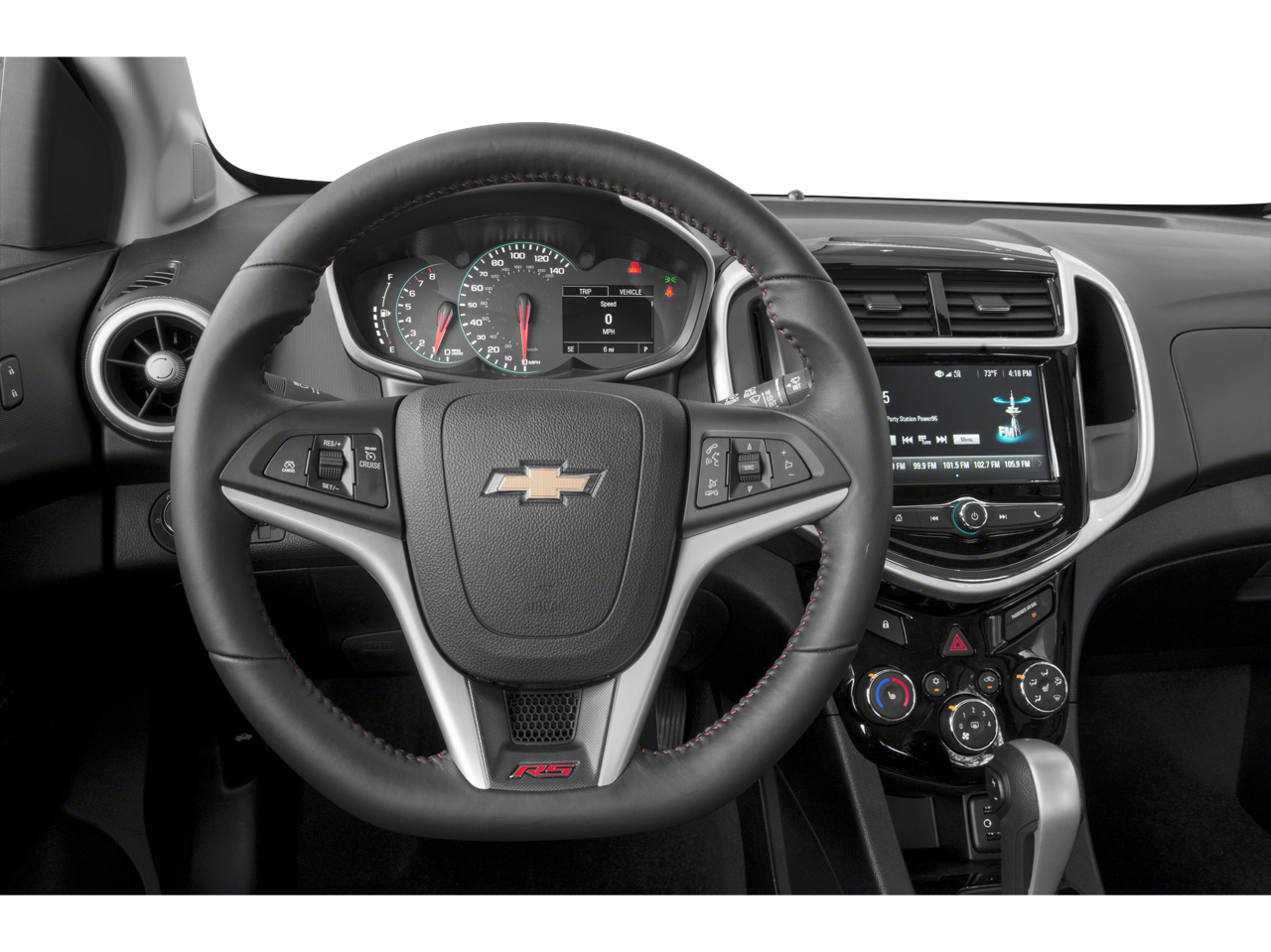 - RS Package includes (T3U) front fog lamps, (B6E) sporty rocker moldings, Black Chevrolet emblems, (T56) rear Sport spoiler, (E38) RS lettering, (VWC) Piano Black accented instrument panel, (N35) sport, 3-spoke leather-wrapped with contrasting stitching and Black Chevrolet emblem, flat bottom steering wheel and (B54) carpeted front and rear, deluxe floor mats